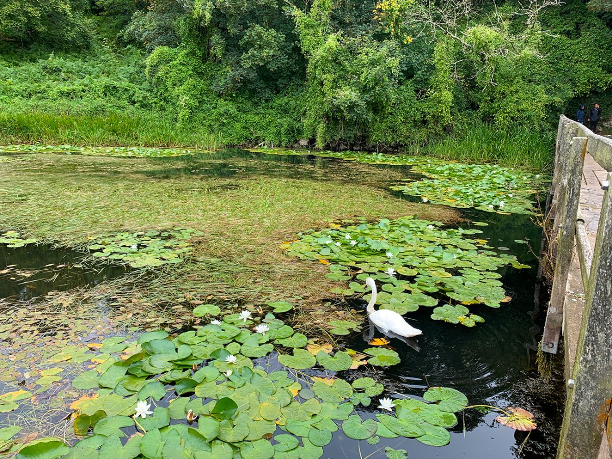 Begin at the Bosherston Lily Ponds National Trust car park, where you’ll find toilets and seasonal refreshments. The route starts gently along the tranquil lily ponds, created in the 18th century by the Cawdor family as ornamental lakes for their estate. In summer, they come alive with a carpet of white lilies, while swans, herons, and moorhens glide through the still waters.