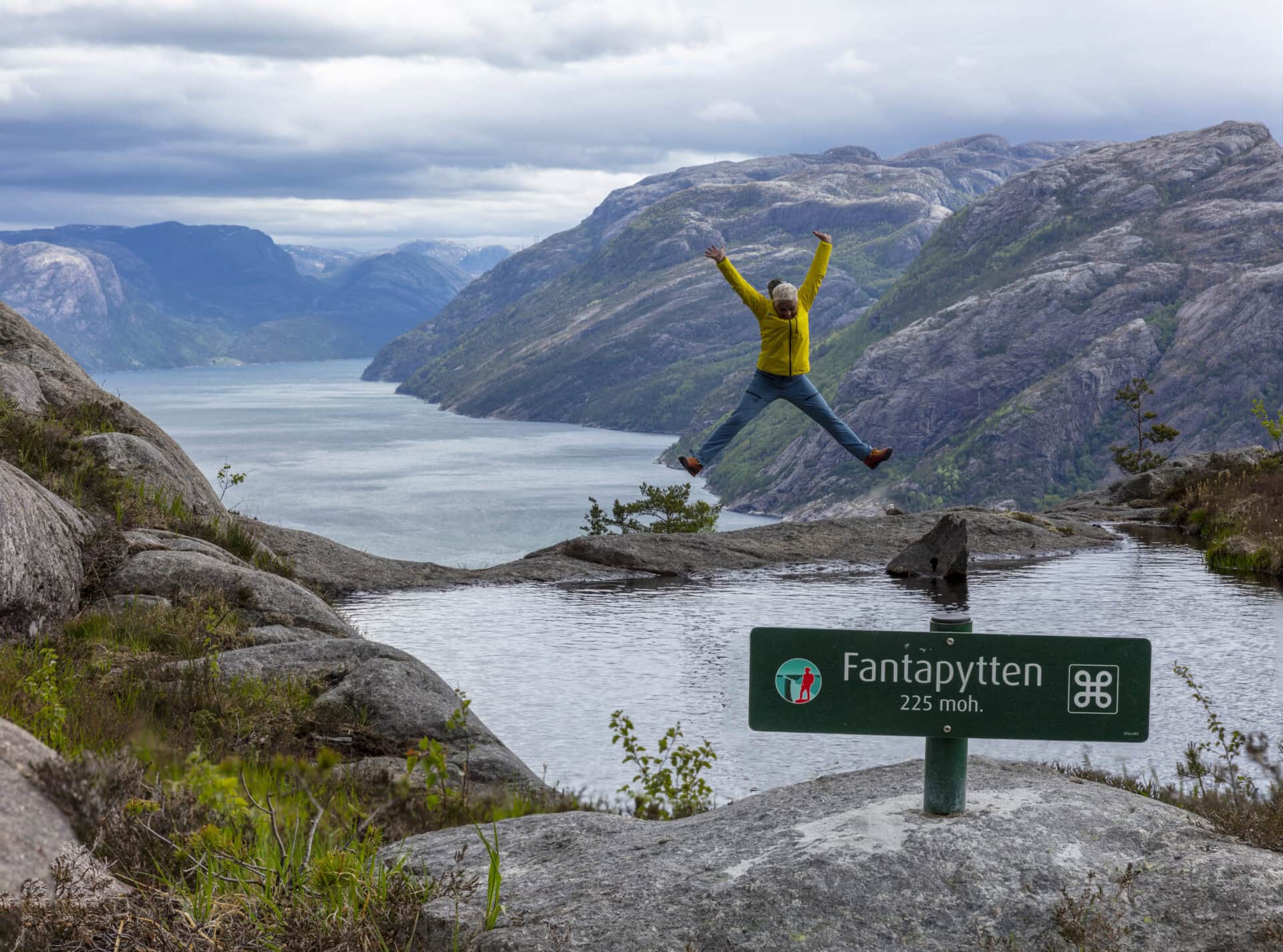 There is a lot of work to do yet before we get to Fantapytten, but there is an excellent opportunity to rest at gorge Skjerajuvet, which is very deep and you have a diving board rock where you can get some awesome pics looking over the Lysefjord.
