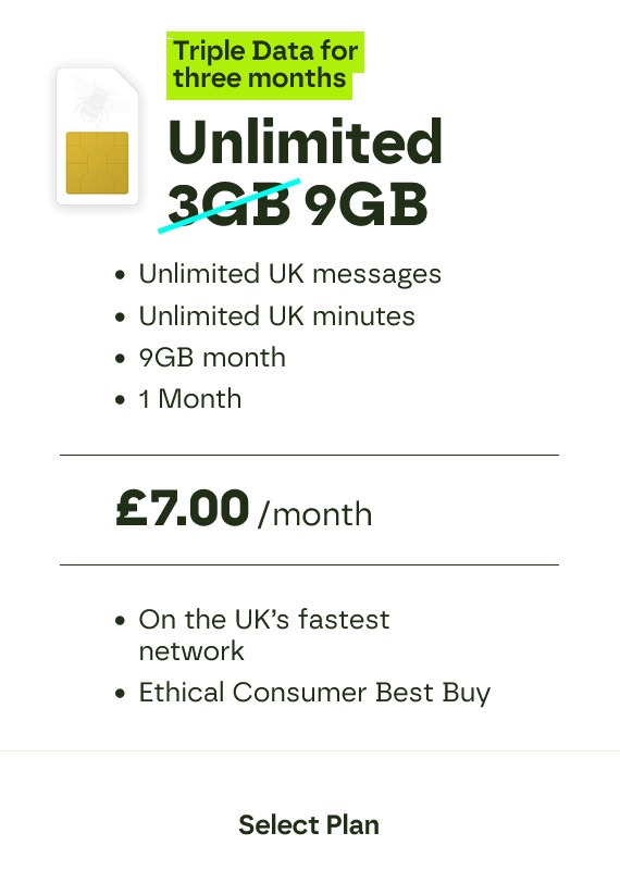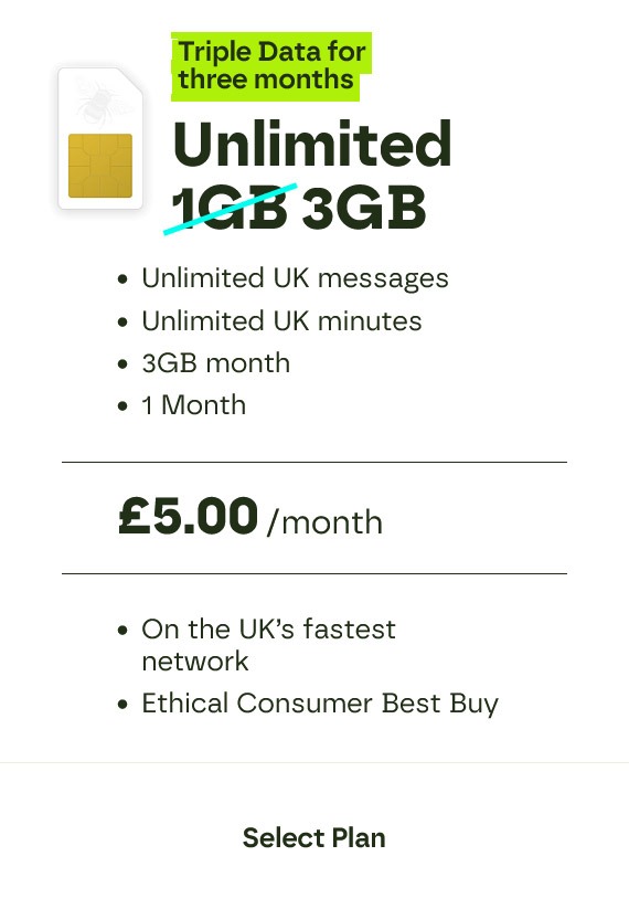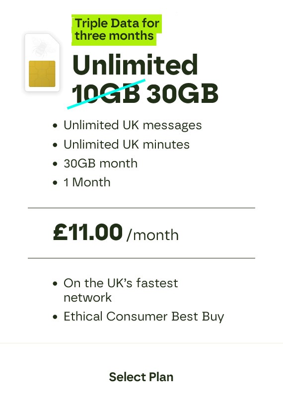 Get Triple Data for Three Months when you swap your SIM today – 10GB 30GB for £11pm