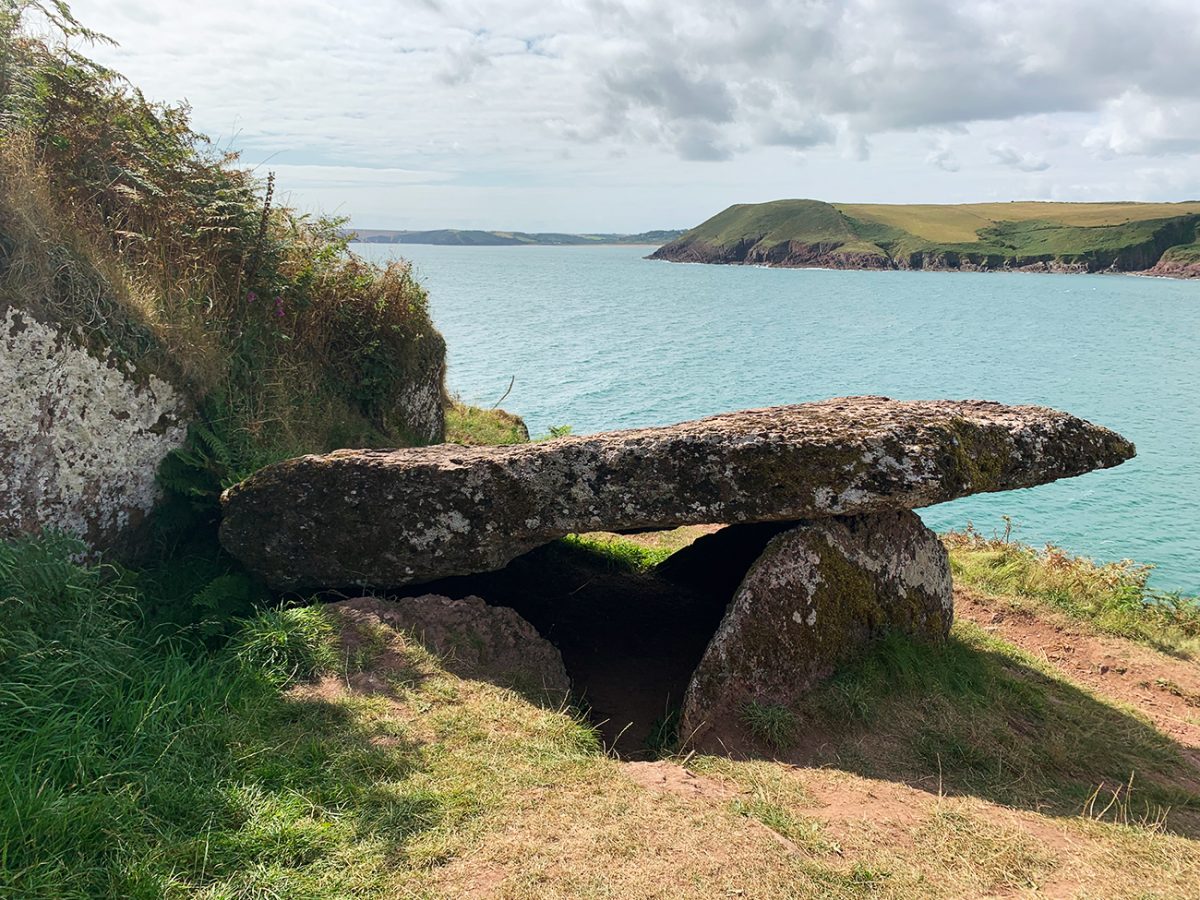 Next comes one of the walk’s true highlights: King’s Quoit, a Neolithic dolmen (burial chamber) estimated to be over 5,000 years old. Perched above Manorbier Beach, it offers incredible coastal views and a tangible link to the area’s prehistoric past.