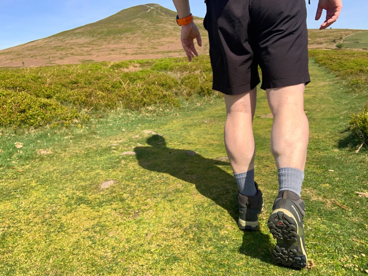 To give the Salomon X Ultra 5 MID GTX a thorough British workout, we ran it through three classic tests. First came Welsh farmland: muddy tractor paths, long stretches of wet grass, compacted soil and plenty of awkward stiles, perfect for seeing how it handled slick, uneven ground. Next, we hit a steeper, dust-dry trail that climbed through loose gravel before descending over rocky outcrops, exactly where a boot’s security gets tested. Finally, we walked a narrow ridgeline strewn with loose rocks, demanding constant micro-adjustments to stay upright, before dropping into softer woodland trails. Throughout, we checked traction, breathability, and whether any hot spots crept in after long miles.